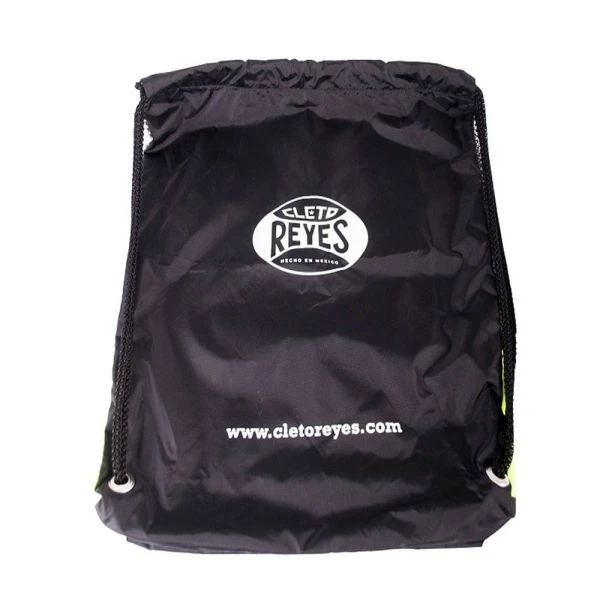Cleto Reyes Gym Sack – A drawstring, waterproof gym sack ideal for boots, gloves and apparel. Features a front pocket and mesh waterbottle holders on the side. Cleto Reyes logo on the front.