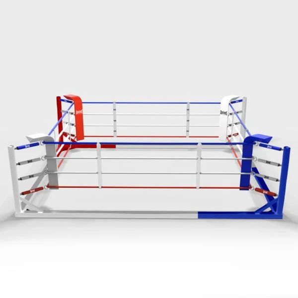 Geezers Club Floor Mounted Boxing Ring – Provides the experience of a traditional boxing ring without the raised platform, making it ideal for gyms with low ceilings. The box frame that connects the corner posts provides added support, making the ring more stable. Must be fixed down to the floor.