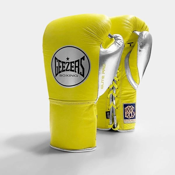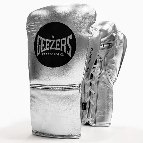 Geezers Elite Pro Fight Boxing Gloves –Â Approved by the BBBofC our pro fight boxing gloves are perfect for all professional fights. Made from premium quality, metallic leather, the gloves have long-lasting durability and performance. The gloves construction is shaped so that your hand is guided into a natural fist position when in use. There is no doubt that these boxing gloves are one of the best pro fight boxing gloves on the market.