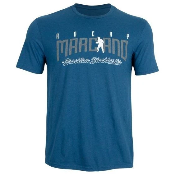 TITLE Boxing Rocky Marciano T-Shirt –Â 100%Â combed ring spun cotton. Slightly slimmer body and shorter sleeves. 1×1 rib knit neck. Tear-away label. Shoulder to shoulder taping.